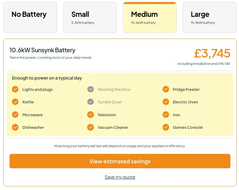 If you think you can get away with a smaller 5.3kW storage battery, the additional cost is just £2,495.