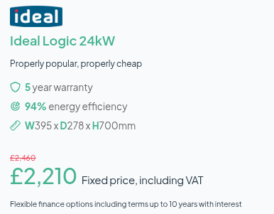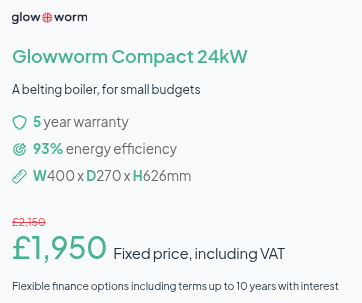 You’ll be able to get a Glow-worm boiler for as little as £1,950, or a Ideal boiler starting at just over £2,200.