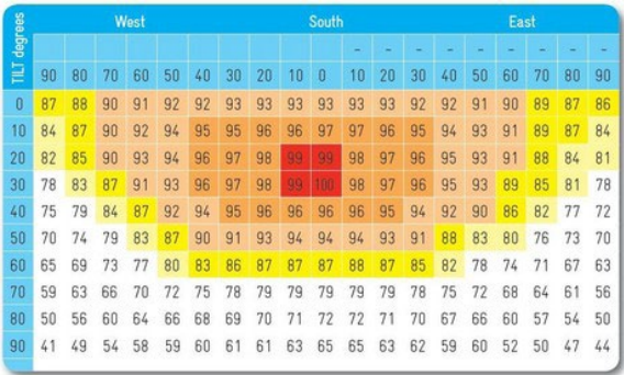 As an example, you'd expect a roof facing east or west (even with the same tilt angle) to produce 15-20% less energy than a roof that's facing due south, according to the Energy Saving Trust.