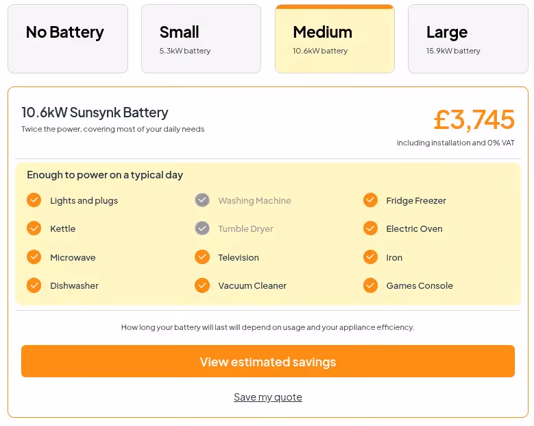 If you think you can get away with a smaller 5.3kW storage battery, the additional cost is just £2,495.
