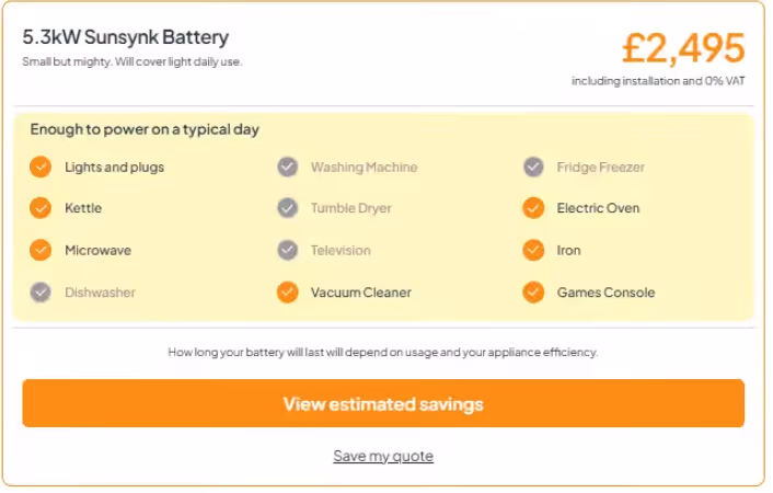 Put simply, you'd expect a 5.32kWh Sunsynk battery to cover electricity usage on the evenings for a low electricity consumption household. Assuming your solar panel system is powerful enough, you can then draw electricity from it (and charge your battery) during the day time.