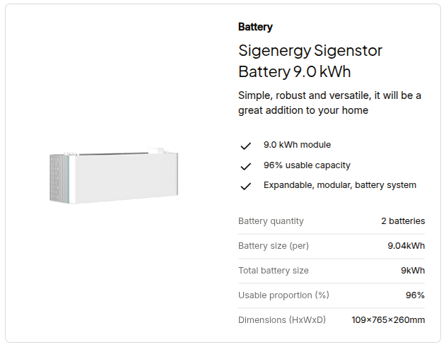 One of our most popular systems incorporates a durable set of batteries (9kWh) total from Sigenergy: